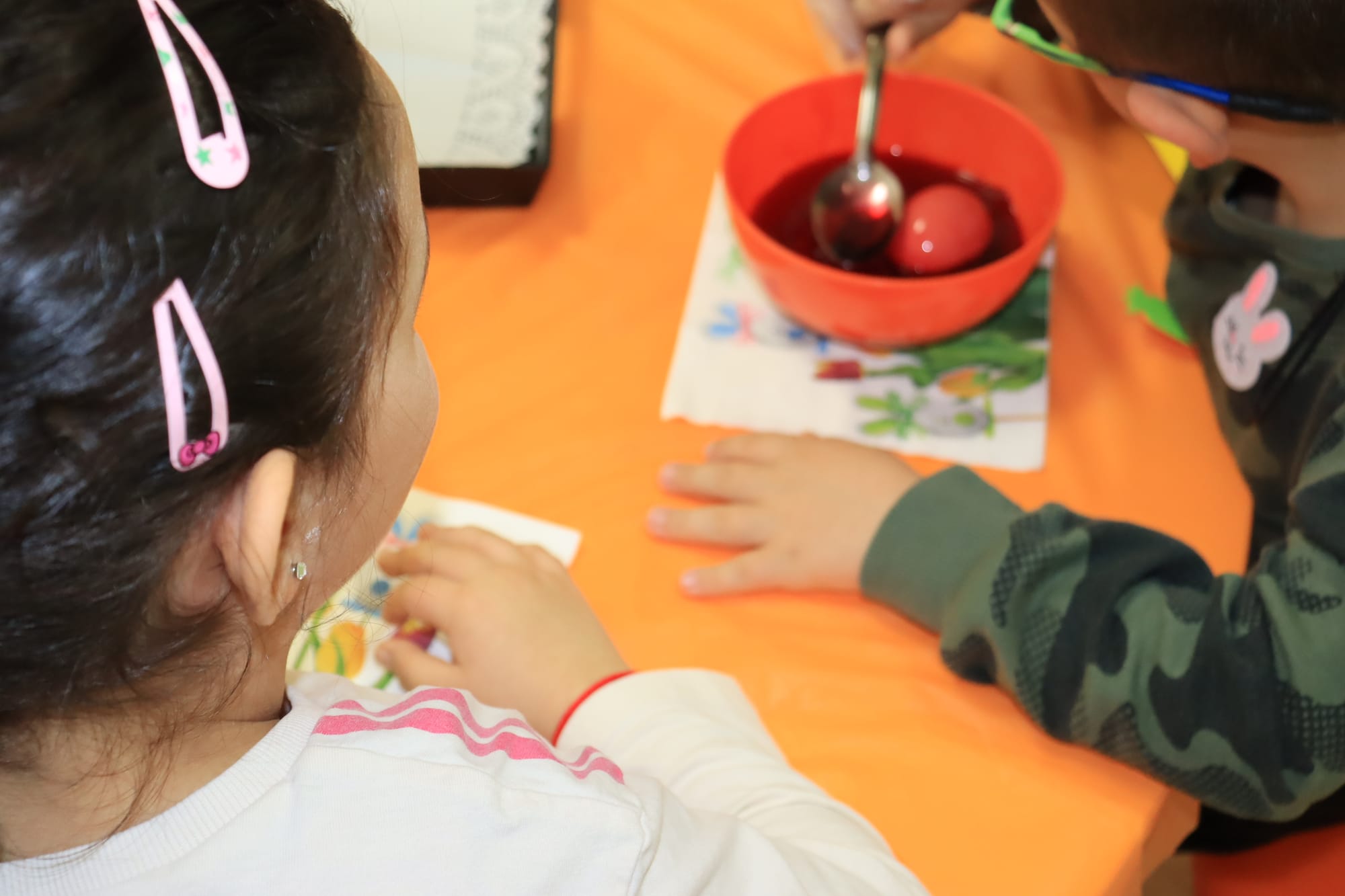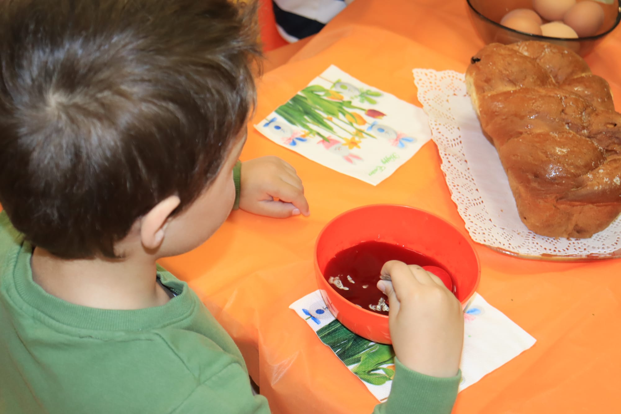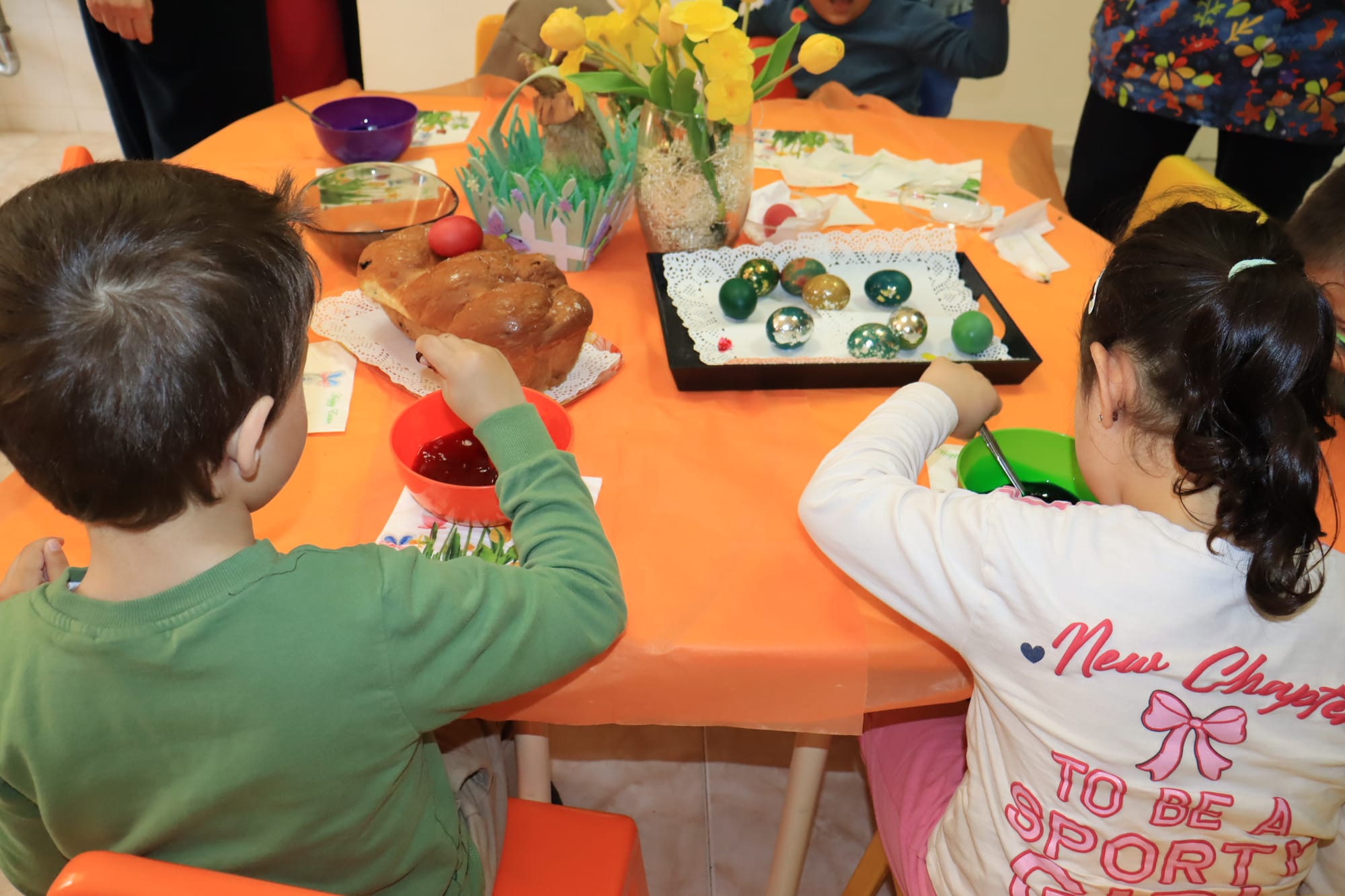 Малките ръчички с вълнение потапяха яйцата в багри, а детските очички блестяха с онази чиста радост, която стопля сърцето.