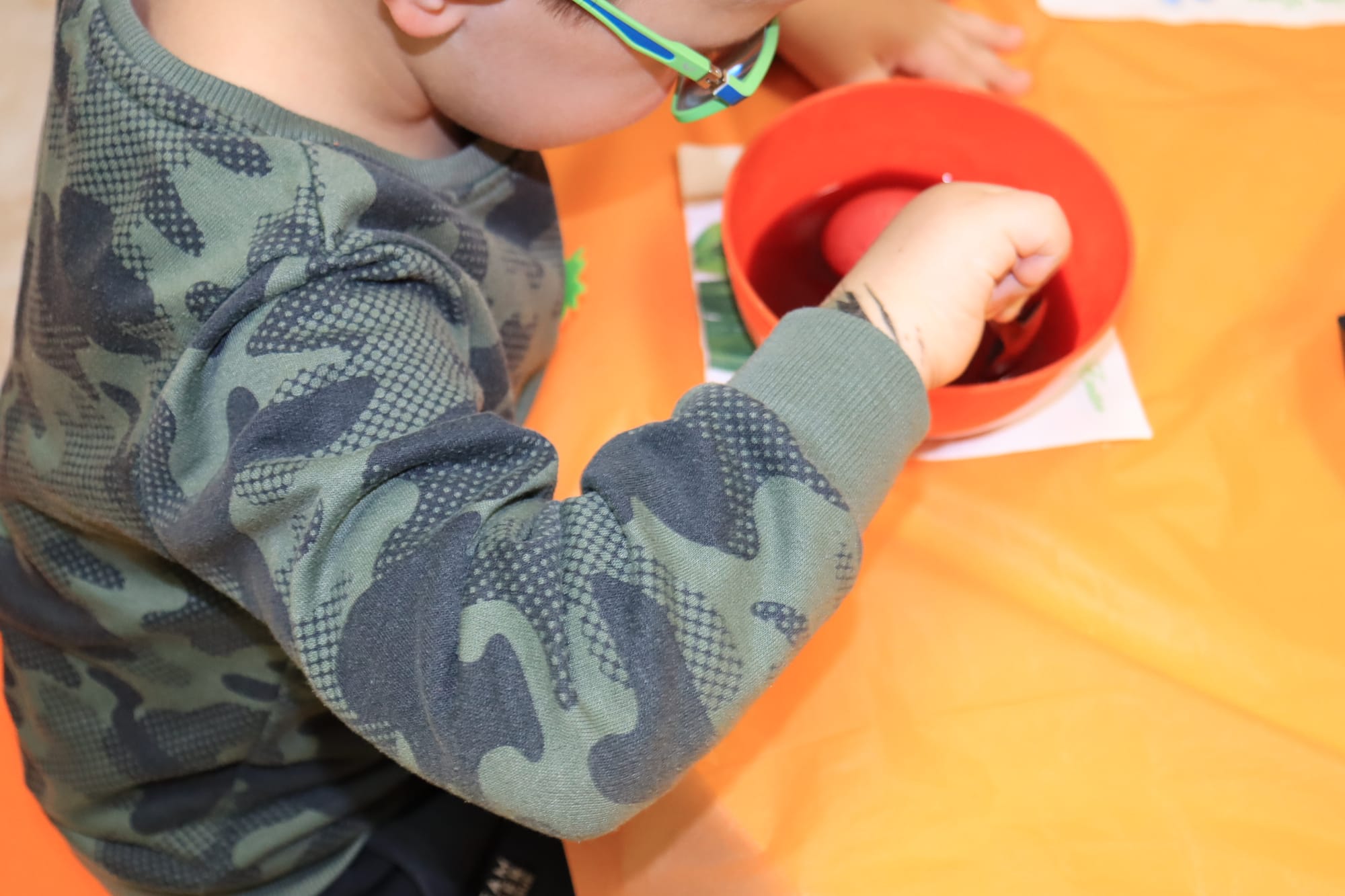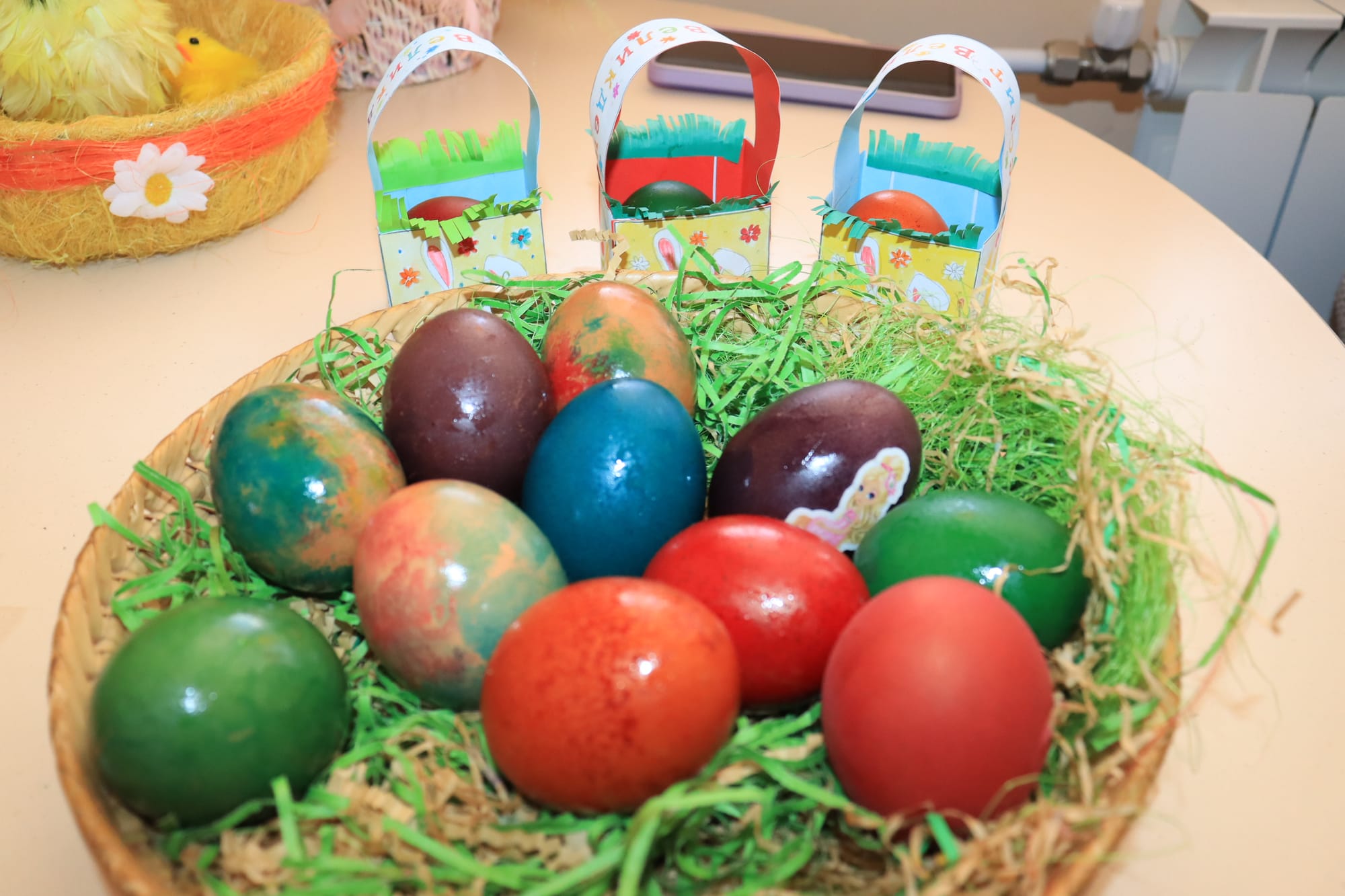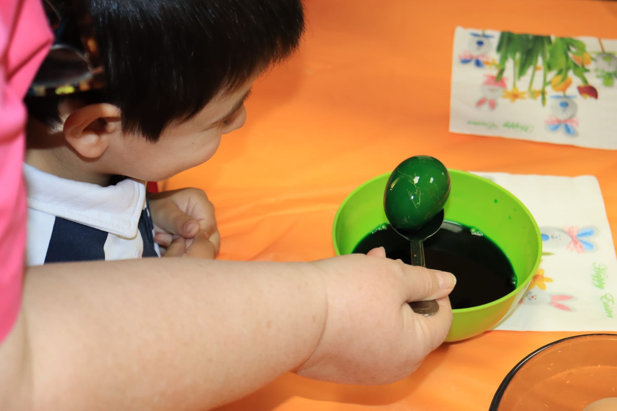Малките ръчички с вълнение потапяха яйцата в багри, а детските очички блестяха с онази чиста радост, която стопля сърцето.